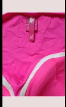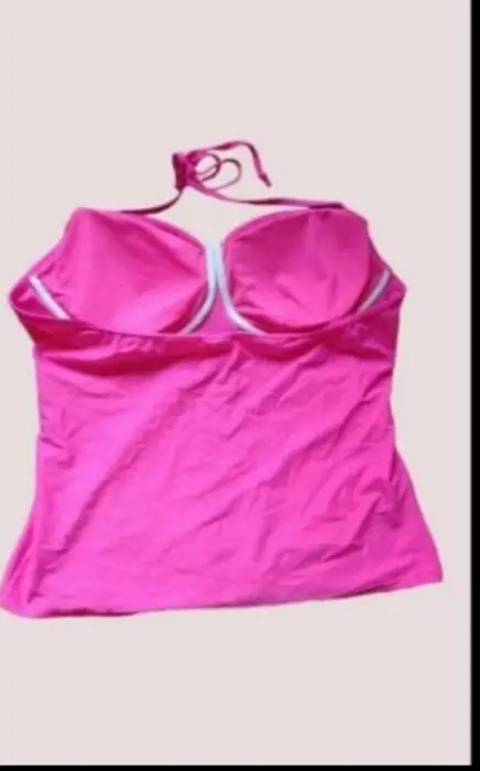 Top traje de baño. En buenas condiciones, limpia con detalle de dentejiela en las copas, el detalle se muestra en la última foto, por estar guardado se soltaron las costuras de la bastilla pero no esta roto