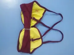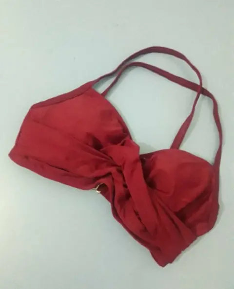 Bonito top color uva, (en la foto se ve guindo) muy favorecedor para busto pequeño, con varillas, en la etiqueta dice copa 32 B/C, con broche de gancho en la espalda.