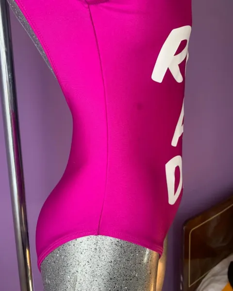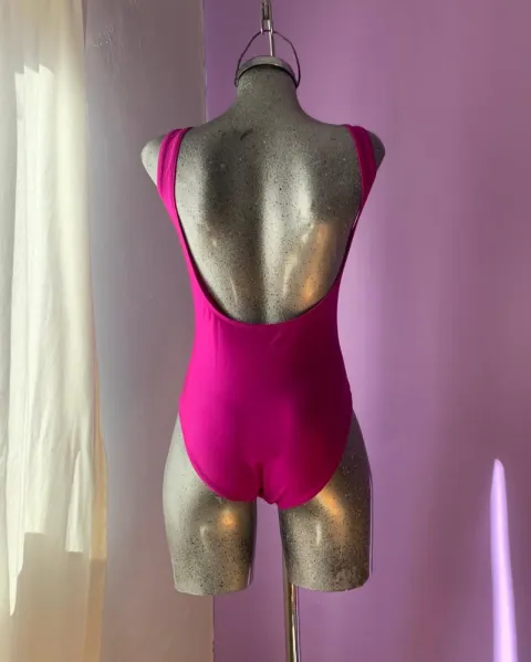 Hermoso traje de baño talla mediana, es tiro alto. Espalda escotada.Tiene una mancha como se ve en la 3ra foto.Sus medidas son: 66cm de largo total y 60 cm de cintura.