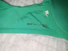 Traje de baño AERIE. Talla 34D, parte superior, sin detalle, en excelentw estado, estampado de palmitas doradas. Color verde turquesa
