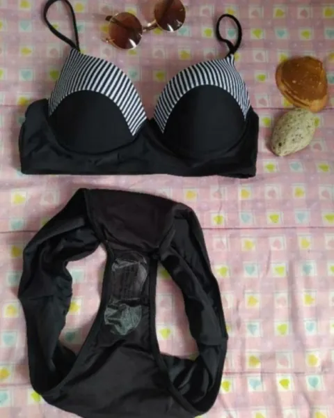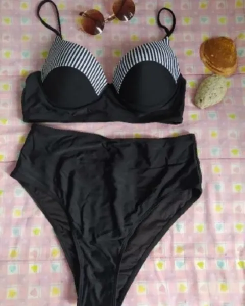 Traje de baño cintura alta, talla M, top con copa preformada, nuevo, guia de tallas en la última foto.
