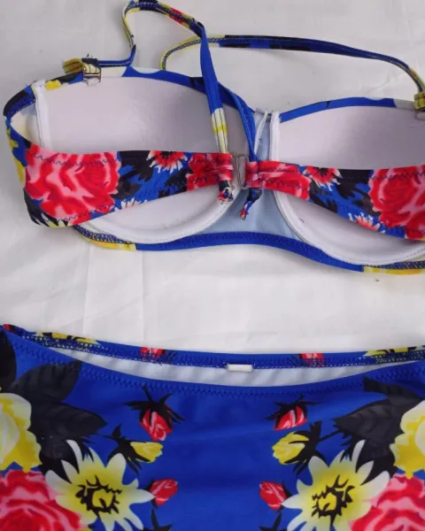 Traje de baño cintura alta talla S, con copas preformadas (32b), estampado floral. Guia de tallas última foto