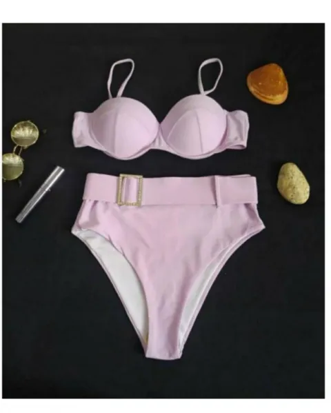 Traje de baño cintura alta. Traje de baño cintura alta talla M, con copas preformadas (34b), color lila, con piedras brillantes en el cinturón. Guia de tallas última foto