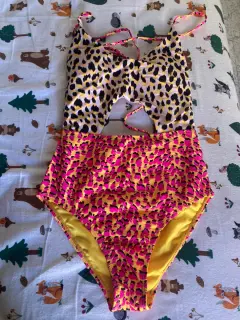 traje de baño completo. talla chica (s), marca arizona, estampado animal print con colores fosforescentes esta nuevo solo que no tiene etiqueta incluye copas