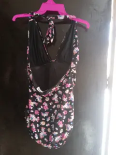 Traje de baño completo. Traje de baño floreado tipo halter con pliegues al frente que te ayudan a dar mejor figura en tu cuerpo, marca ilusión