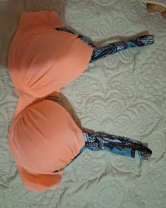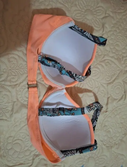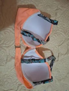 Hermoso traje de baño de color coral. Los tirantes del bra son ajustable y es push up. Se amolda bien a tu cuerpo. Queda hasta para copa 32b