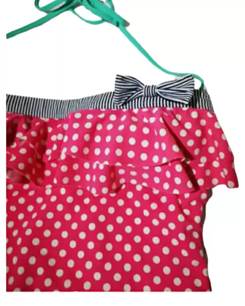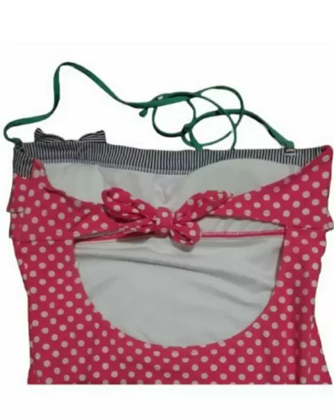 Traje de Baño entero. Talla L/g, color rosa con puntos negros y detalles en aqua, blanco y negro, muy bonito, marca Arizona. Está nuevo, solo no tiene las etiquetas.De axila a axila mide 41 cm pero estira y trae cordones para ajustar atrás, contorno de cintura 74 cm y estira hasta 94 cm, contorno de cadera 84 cm y estira hasta 108 cm.