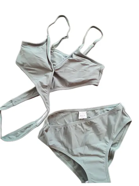 Traje de baño con estampado tropical, cruzado a 3 piezas ideal, para estas vacaciones, talla 8/9