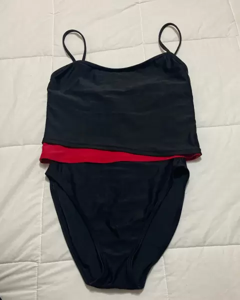 Traje de baño una sola pieza T/S. Hermoso traje de baño, una sola pieza, negro con rojo, T/6, Poco uso
