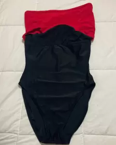 Hermoso traje de baño, una sola pieza, negro con rojo, T/6, Poco uso