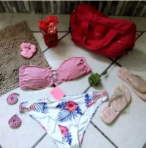 Traje de baño.2.piezas (bikini). Está completamente NUEVO, tiene la etiqueta y el precio, luce hermoso, talla L y queda tambien a M.Te invito a conocer mi CLOSET, tengo variedad de prendas y tallas.