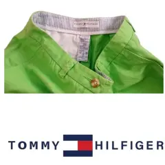 Bermuda golf Tommy Hilfiger. Bermuda Tommy Hilfiger golf t2 verde limón trabillas, cierre y botón grabado, bolsas laterales y una trasera, bordado de la marca, 68cm cintura 90cm cadera 30cm tiro frontal 44cm largo total. Material 100% algodón.
