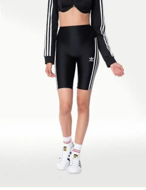 Biker adidas nuevo a estrenar con etiqueta talla L negro con franjas originales blancas bordadas luce hermoso, queda arriba de la rodilla licra gruesa
