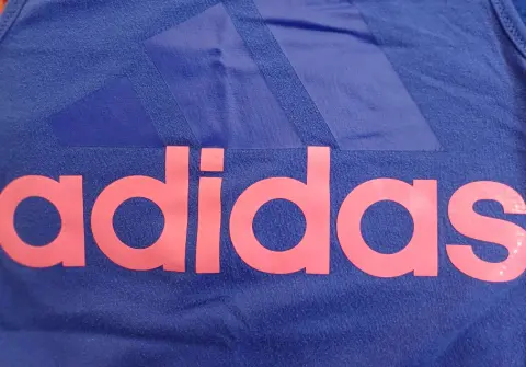 Blusa Adidas. Blusa deportiva, color azul marino sin mangas, marca Adidas con el logo de la marca grande en la parte frontal en color rosa, cuello redondo, talla grande (en niño) queda a una talla chica en adulto.