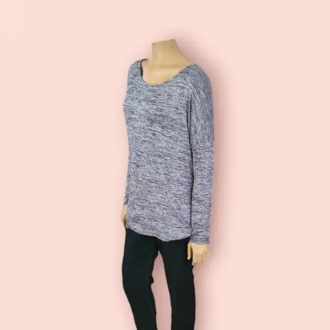 Blusa Casual Cruzada Atleta, talla, mediana, color gris, cuello redondo, manga larga, espalda cruzada, hecha de poliéster, modal y espandex, tela lijera, mide 60cm de hombro a hombro, 58cm de axila a axila, 52cm de cintura, 45cm de manga con 70cm de largo del hombro hacia abajo en buen estado cosmetico.