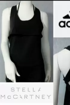 Camiseta deportiva Adidas. Camiseta Gris oscuro deportiva Strech con tiras cruzadas en espalda,Marca Stella McCartney Adidastalla-L