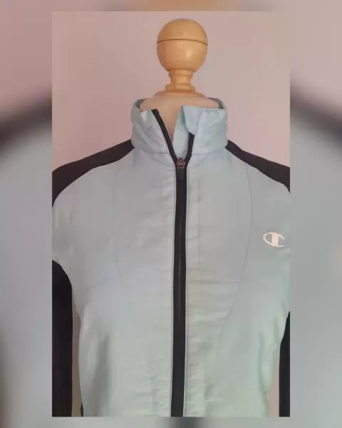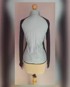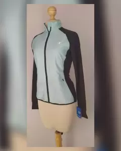 Chamarra Deportiva Warm Control. Chamarra deportiva PERFORMAX WARMTH WITHOUT WEIGHT bitono VERDE MENTA/NEGRO ÉBANO, cierre p/cremallera, cuello Perkins, 2 bolsos vivo c/cremallera, manga larga terminada en puño. Diseñada para mantener la temperatura corporal cuando baja la temperatura, siendo muy ligera, protección contra rayos UV y ajuste perfecto. Talla M. Dimensiones cms: 36.5 hombro, 47 axila, 43.5 cintura, 50 zona baja, 60.5 largo, 70.5 largo manga. Cuerpo 50% poliamida, 50% poliéster. Mangas e insertos 84% poliéster, 16% elastano. Para lavado en casa.