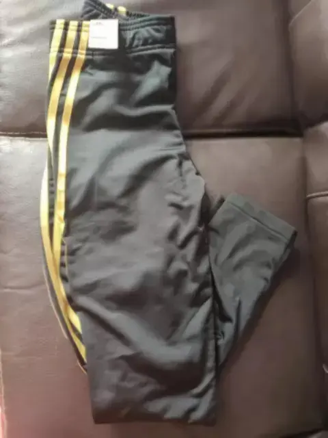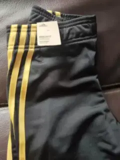 Conjunto Adidas Teens. Conjunto deportivo Adidas Teens, talla L -14. El color es negro y los detalles de la marca y franjas son doradas, viene semi entubado del pants y tiene bolsas. La sudadera es sin gorro de cuello tipo tortuga, también con bolsas. Es Unisex.