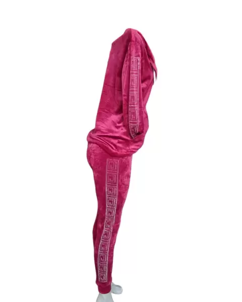 Conjunto de dos piezas pants terciopelo. Conjunto de pants incluye pantalón y sudadera, terciopelo, pantalón tipo jogger y aplicación de pedrería en los costados de pantalón y sudadera, tallas M G y XL que va de la 28 a 40, colores negro, gris, morado, vino, marino y chedron