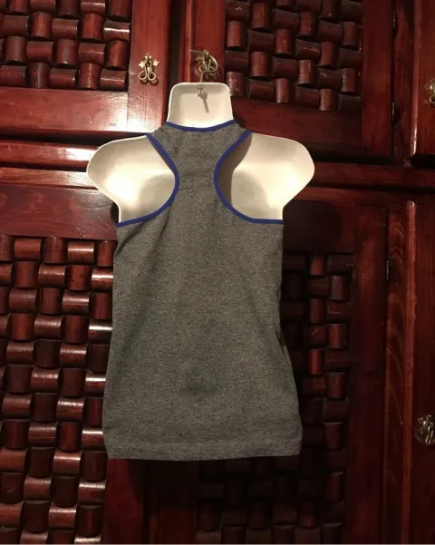Conjunto deportivo en color gris con detalles en color morado , es unitalla pero le viene mejor a una talla S incluye playera de tirantes anchos y leggin ajusta muy padre al cuerpo