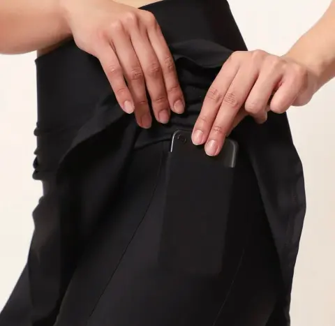 Falda short de licra deportiva con bolsa lateral para celular, es de licra colombiana que no se transparenta, no se decolora y hace forma