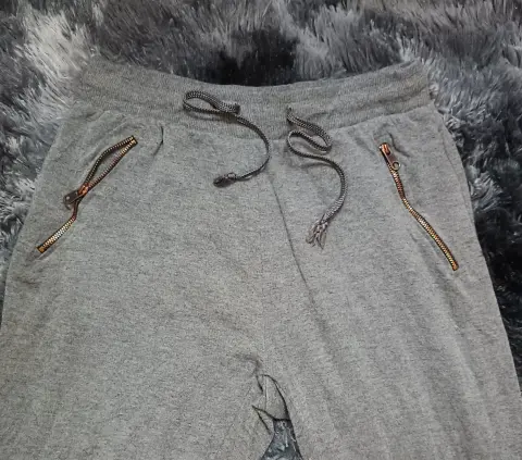 Jogger Daysi Fuentes. Talla medianaColor grisCon elástico en la cintura y agujeta, bolsas laterales con cierre metálico Tela rayón, spandex y poliéster