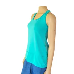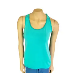 Kirkland Signature Camiseta De Yoga, talla mediana, color verde claro, tela transpirable, cuello redondo, sin mangas, reforsada en cintura baja, espalda en T, hecho de poliéster y spandex, mide 33cm de hombro a hombro, 37cm de axila a axila, 40cm de cintura con 66cm de largo del hombro hacia abajo nueva a estrenar en buen estado cosmetico
