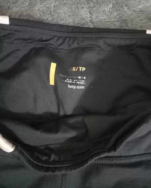 Leggin deportivo Lucy Activewear. Leggin deportivo color negro con detalle a los costados color Rosa-Beige, en excelente estado talla Extra Chico, con bolsillo trasero oculto. Sin detalles de uso, comodo y fresco. Tiene spandex