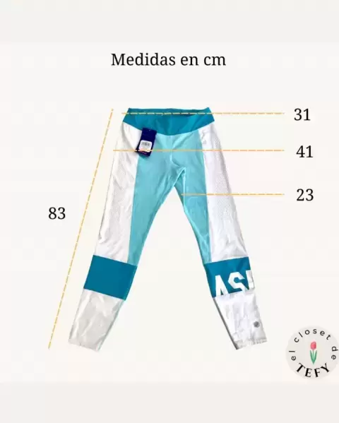 Legging azul con blanco. * Con etiqueta, no tiene detalles* Largo de 3/4* Medidas del producto: * Largo: 83 cm* Largo cintura: 31 cm* Largo cadera: 41 cm