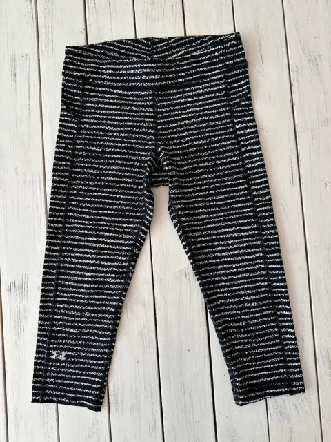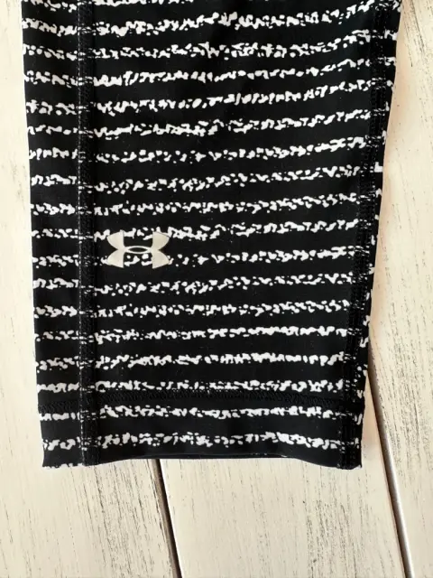 Legging deportivo under armour. Malla negra con líneas blancas, llega bajo la rodilla, tiro medio, con compresión.Talla: S o XSMedidas: 33 cm de cintura, 36 cm cadera, 20.5 cm de tiro, 47.5 cm de entrepierna.Sin detalles.