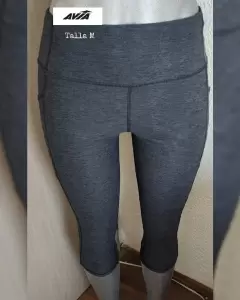 Leggins gris, liso, marca Avia, largo bajo rodilla, entubado, licra, ajustado, no transparente