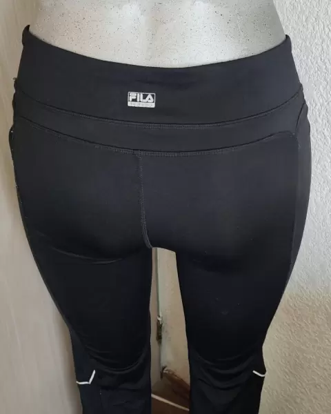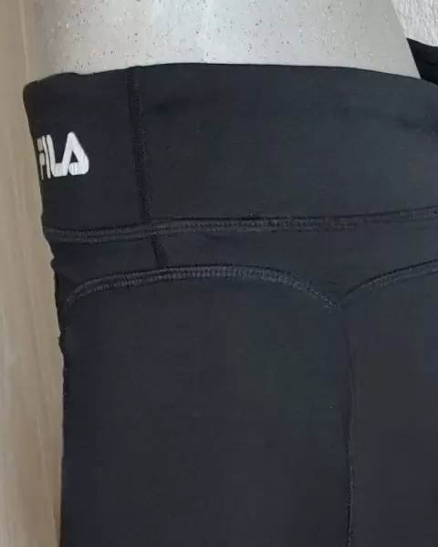 Leggins color negro, liso, marca FILA, largo, recto, licra, ajustado, no transparente