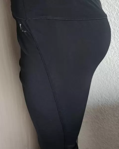 Leggins negro, liso, marca New Balance, largo abajo de rodilla, entubado, licra, ajustado, no transparente