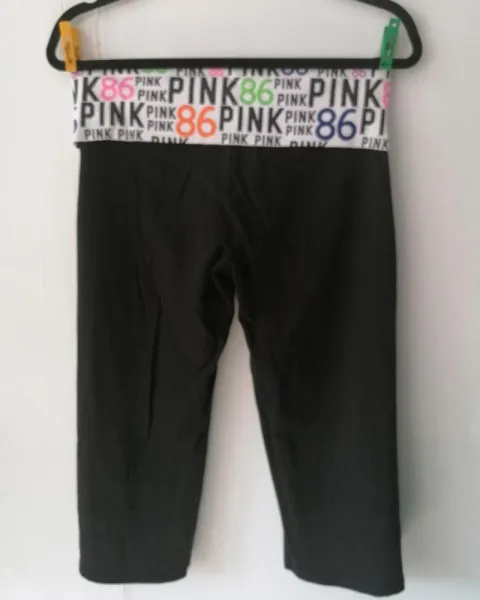 Leggings deportivos PINK. Precioso Capri depostivo súper stretch con franja en abdomen con logo de la marca e inscrustaciones en relieve. Súper stretch. En perfecto estado, sin detalles.