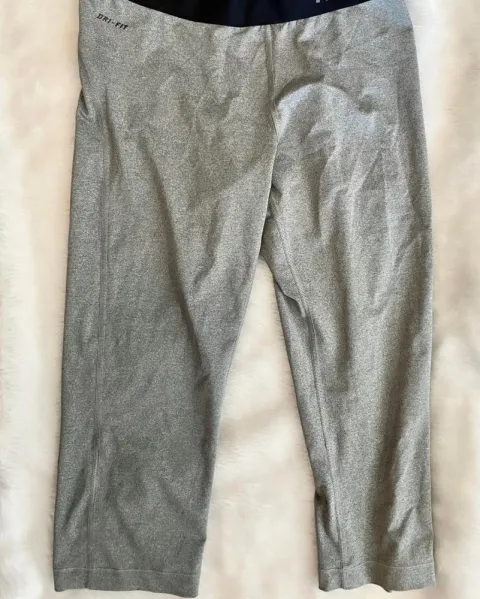 Leggings gris cortos Nike originales. Leggings grises talla L, yo los usaba cuando era talla 32/30, a 28 también quedan bien. Sin detalles. Llegan abajo de la rodilla y son súper cómodos. No se transparenta. Todo lo que vendo es original.