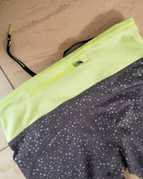 Leggings nike gris. No tiene detalles, tiene una linda bolsita en la parte de atras y trae cierre es gris con puntos blancos y vistas verde