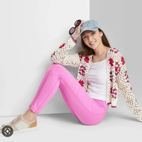 Preciosos leggings de tiro alto en color rosa💖 súper cómodos y ligeros la tela es muy suave tipo piel de durazno💖🥰Cuenta con bolsillos a los costados para que guardes tu celular o algún objeto de tamaño similar🥰 pertenen a la línea de moda responsable hecha con al menos 80% de poliéster reciclado✨Talla S pero la tela estira queda a M también💖🥰Nuevos con etiqueta 💖