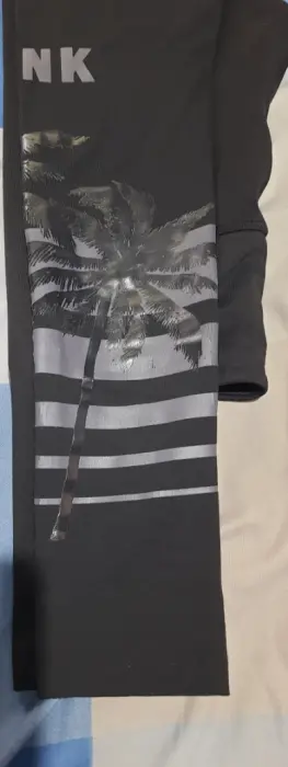 Leggins con estampado de palma en un lado dice talla xs pero queda hasta mediana