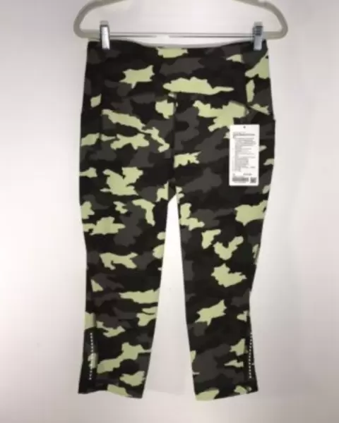 Leggins camuflajeado. Leggings lululemon talla 14 le queda a una talla L hasta 2xL con cinta de ajuste en cintura, bolsa atrás con cierre y bolsa en los costado 43 cm de cintura y 80 cm de largo.