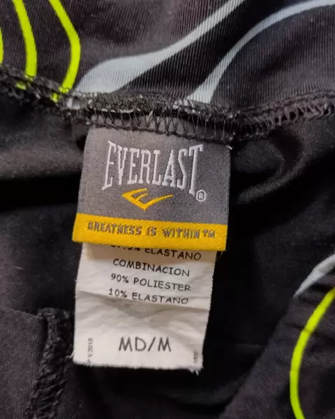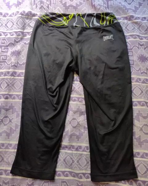 Licra, corta, con vivos en cintura, ligera, ideal para hacer ejercicio.