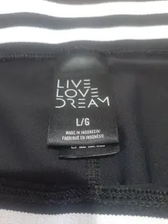 Licra deportiva para Dama color negro con franjas a los lados color coral, cintura trae elastico, llega a la pantorrilla, nueva, marca Live Love Dream