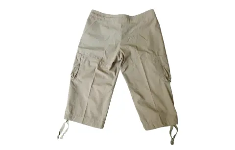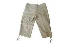 Nike pantalón Capri Dama Verde Olivo.. Pantalones Nike para Senderismo/Exterior Capri Verde Oliva Cordón Cintura Talla Small (4-6).Pantalón capri cargo Nike con 2 bolsillos, cierre con cremallera, gancho y cordón, cordón en el tobillo.Material: 65% poliéster y 35% algodón.Medidas:55 cm de largo, 84cm de ancho en cintura, 104 cm de ancho en cadera.
