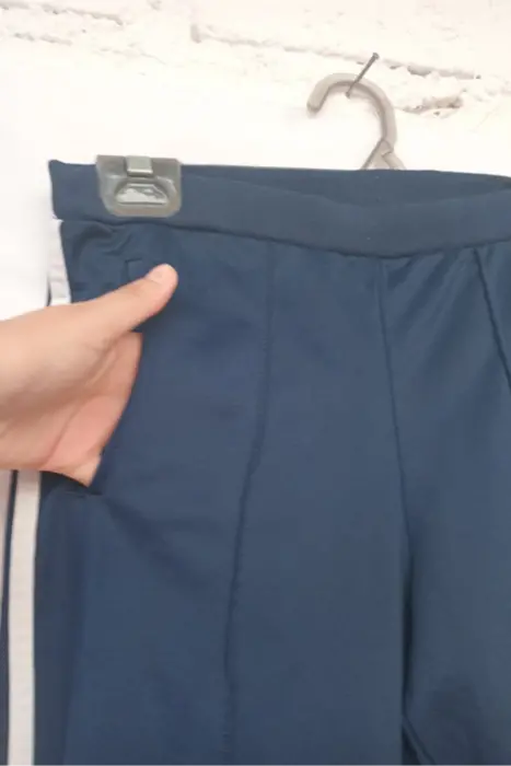 Pans azul marino. Pans azul marino tipo pesquero, se abre de los lados solo una parte como viene en la imagen última, tela polyester, en la talla dice L pero viene reducido aquí te dejo las medidas*38 cm de cintura*85 cm de largo