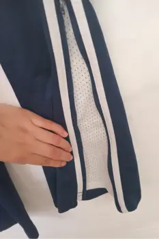 Pans azul marino tipo pesquero, se abre de los lados solo una parte como viene en la imagen última, tela polyester, en la talla dice L pero viene reducido aquí te dejo las medidas*38 cm de cintura*85 cm de largo