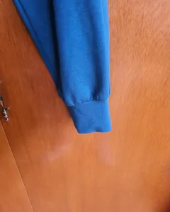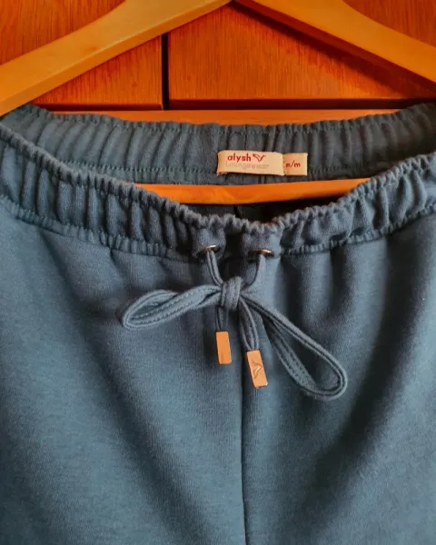 Pants azul. Pants suave al tacto en color azul, con elástico en la cintura y cintas para hacer moño. Al final de la pierna es en puño