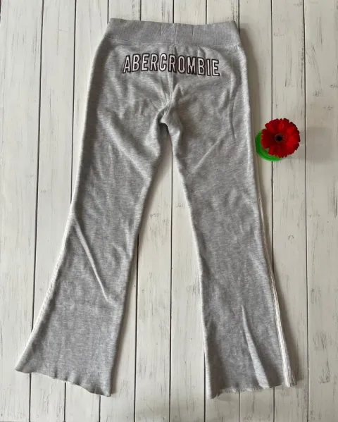 Pants grises Abercrombie. Talla: STiene franjas blancas a los costados, letras de la marca en la parte trasera, ajuste a la cadera y jareta. Medidas: 37 cm de cintura, 47 de cadera, 21 cm de tiro y 80 cm de entrepierna.