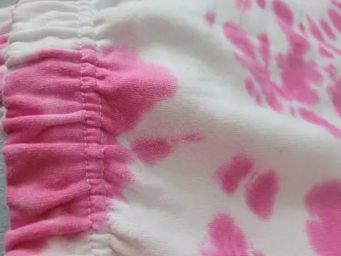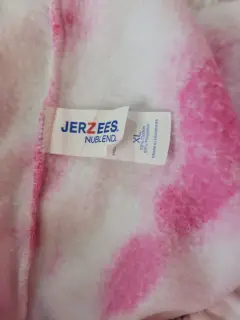 Pants color rosa con blanco, es muy largo, se puede usar a la cadera o a la cintura alta, es talla XL.
