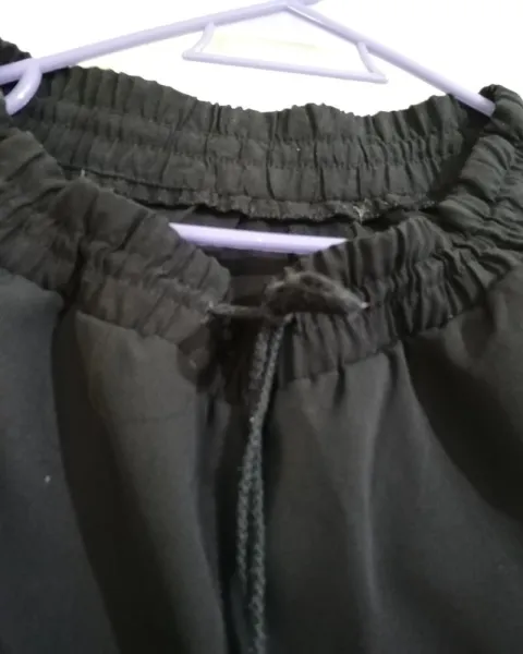 Pants negro con resorte en la cintura y en la parte del tobillo, cuenda para ajustar en la cintura, tiene bolsasCintura sin ajustar: 76Cadera: 100cmLargo: 97cm