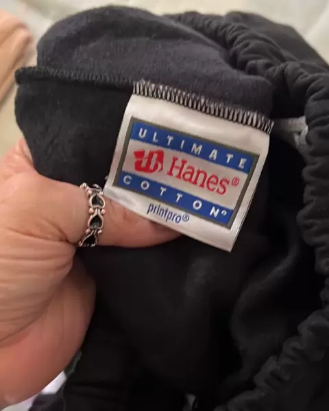 Pants negro afelpado, calientito, con bolsas a los lados, holgado, con agujeta para ajuste en la cintura, resorte en la parte final de la pierna, talla chica, marca HanesNuevo, sin etiquetas y sin daños