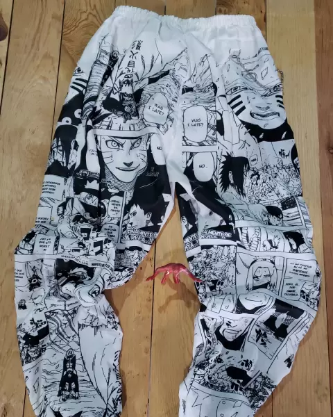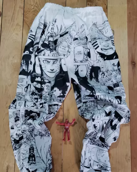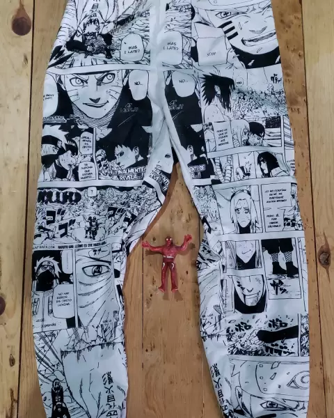 Pants para hacer ejercicio y sudar mucho. El pants es de Naruto y tiene un adorno de cadena.